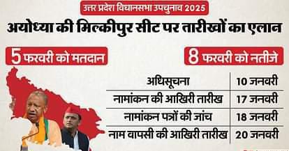 उत्तर प्रदेश में अयोध्या की मिल्कीपुर विधानसभा सीट पर उपचुनाव के लिए दाखिल नामांकन पत्रों की जांच की गई। कुल 14 प्रत्याशियों की ओर से 22 सेट में नामांकन पत्र दाखिल किया गया था। जांच के बाद 10 प्रत्याशियों के नामांकन पत्र वैध पाए गए।