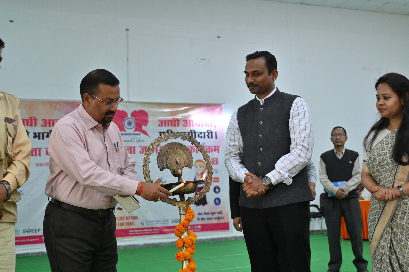 कार्यक्रम का शुभारंभ जिलाधिकारी कमेंद्र सिंह, अपर मुख्य निर्वाचन अधिकारी डॉ. विजय कुमार जोगदंडे ने दीप जलाकर किया।