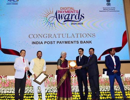 संचार मंत्रालय के डाक विभाग के तहत 100 प्रतिशत भारत सरकार के स्वामित्व वाली इकाई इंडिया पोस्ट पेमेंट्स बैंक (आईपीपीबी) को देश भर में डिजिटल भुगतान और वित्तीय समावेशन के विस्तार में इसके उत्कृष्ट योगदान के लिए वित्तीय सेवा विभाग (डीएफएस), वित्त मंत्रालय द्वारा प्रतिष्ठित डिजिटल भुगतान पुरस्कार 2024-25 से सम्मानित किया गया है।