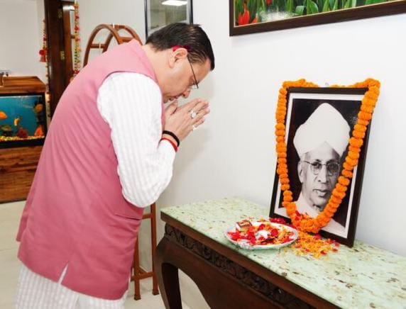 मुख्यमंत्री श्री पुष्कर सिंह धामी ने पूर्व राष्ट्रपति, महान दार्शनिक, शिक्षाविद् एवं विचारक भारत रत्न डॉ. सर्वपल्ली राधाकृष्णन की जयंती पर उनके चित्र पर पुष्प अर्पित कर श्रद्धांजलि दी।