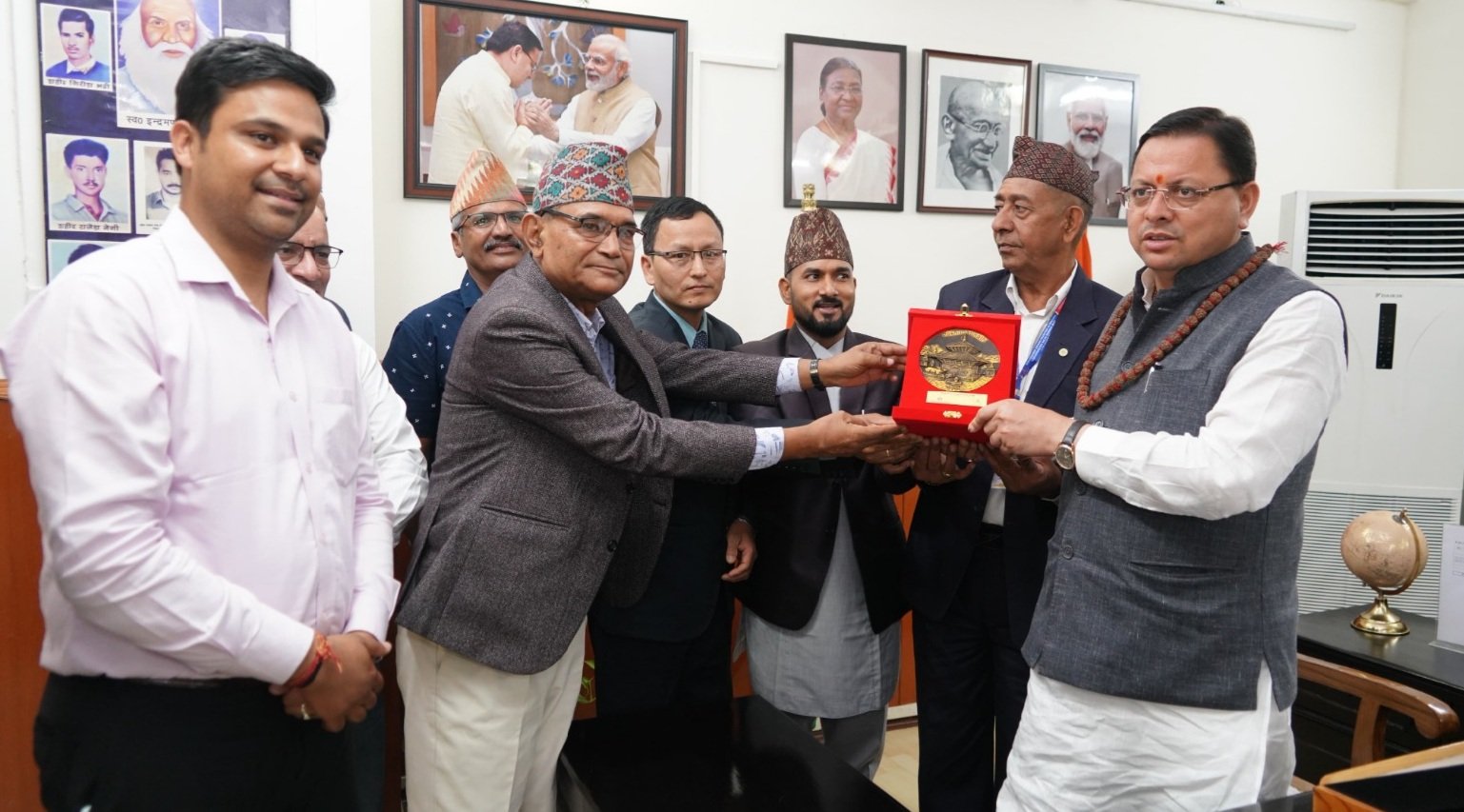 आज मुख्यमंत्री पुष्कर सिंह धामी से सचिवालय में नेपाल एसोसिएशन ऑफ टूर एंड ट्रेवल एजेंट के प्रतिनिधियों ने अध्यक्ष पद्म विक्रम सिंह के नेतृत्व में भेंट की। उन्होंने मुख्यमंत्री को नेपाल में संचालित पर्यटन गतिविधियों की जानकारी दी।